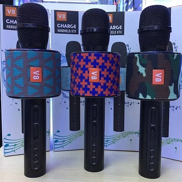 Новинка 2018 года. Караоке микрофон bluetooth V8 вы можете купить в нашем магазине по низкой цене. Преимущества новинки в том что колонка полностью переделана и отличается от других моделей новым процессором и музыкальной начинкой, множество функций в маленьком устройстве, вы можете обойтись всего одним микрофоном чтобы провести презентацию или просто устроить караоке вечер в кругу друзей.