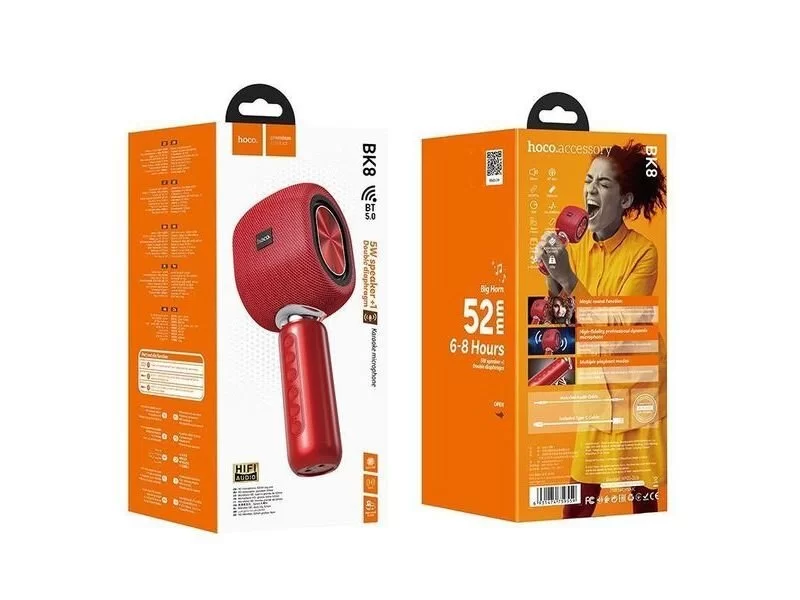 Караоке-микрофон BK8 Cool Hi, KTV микрофон, BT v5.0, аккумулятор 2000mAh для 6-8 часов работы, поддержка BT, TWS, AUX, наушников 3.5мм, множество звуковых эффектов.