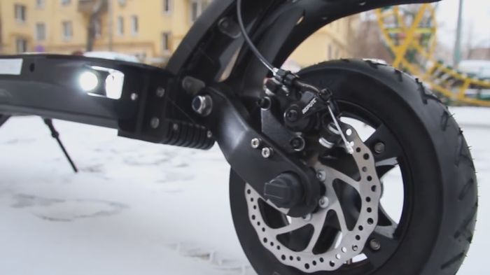 - Фары представлены двумя парами габаритных огней - это существенный плюс потому, что вы сможете ездить на устройстве даже в темное время суток, не переживая за свою безопасность