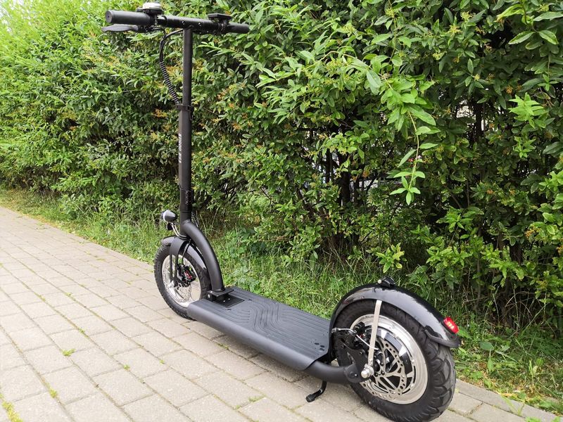 - Модель оснащена надувными колесами, сглаживающими все дорожные неровности, включая стыки брусчатки и гальку. Шестисантиметровые шины в совокупности с дисковыми тормозами помогают эффективно притормаживать даже на высоких скоростях. На максимальной скорости аппарат едет прямо, не уклоняясь в стороны.
