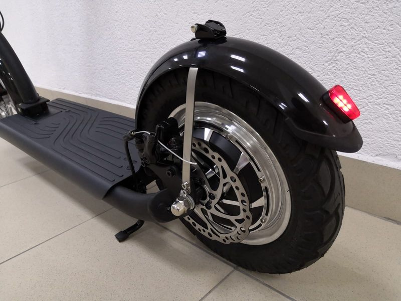 Что касается колес, то на них в первую очередь обращают внимание покупатели. Колеса имеют большие габариты. Их высота — 12 дюймов, ширина — 6,2 см. И спереди, и сзади установлены широкие пневматические колеса на дорожных шинах. Благодаря им, транспорт едет мягко, несмотря на то, что у него нет подвески.