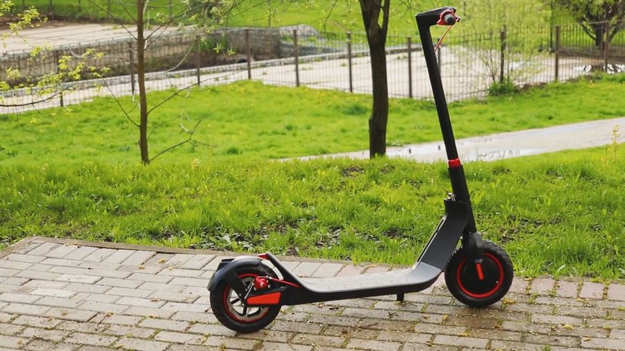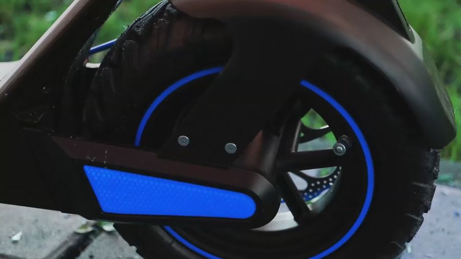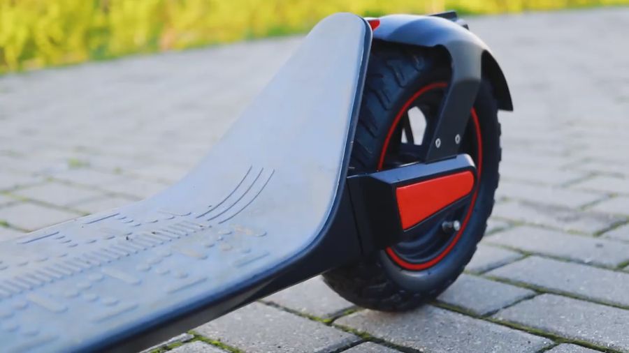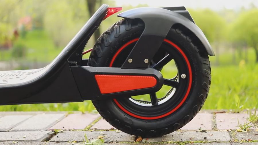 - 10-дюймовые резиновые надувные колеса с внедорожными покрышками и клиренсом в 10 см придадут мягкость ходу при движении по ухабистым дорогам.