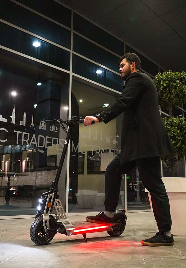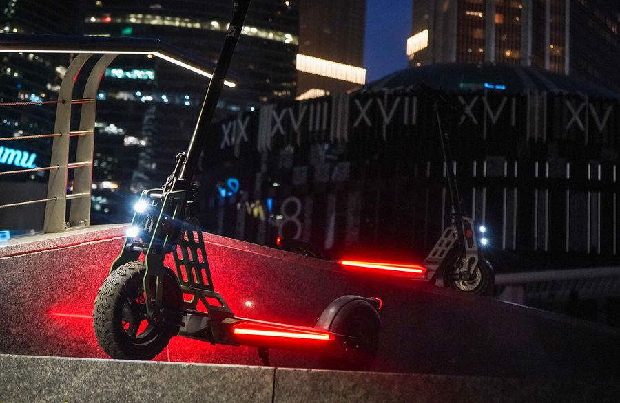 - Самокат оснащен двумя фарами NANOLED со сверхъяркими светодиодами CREE;