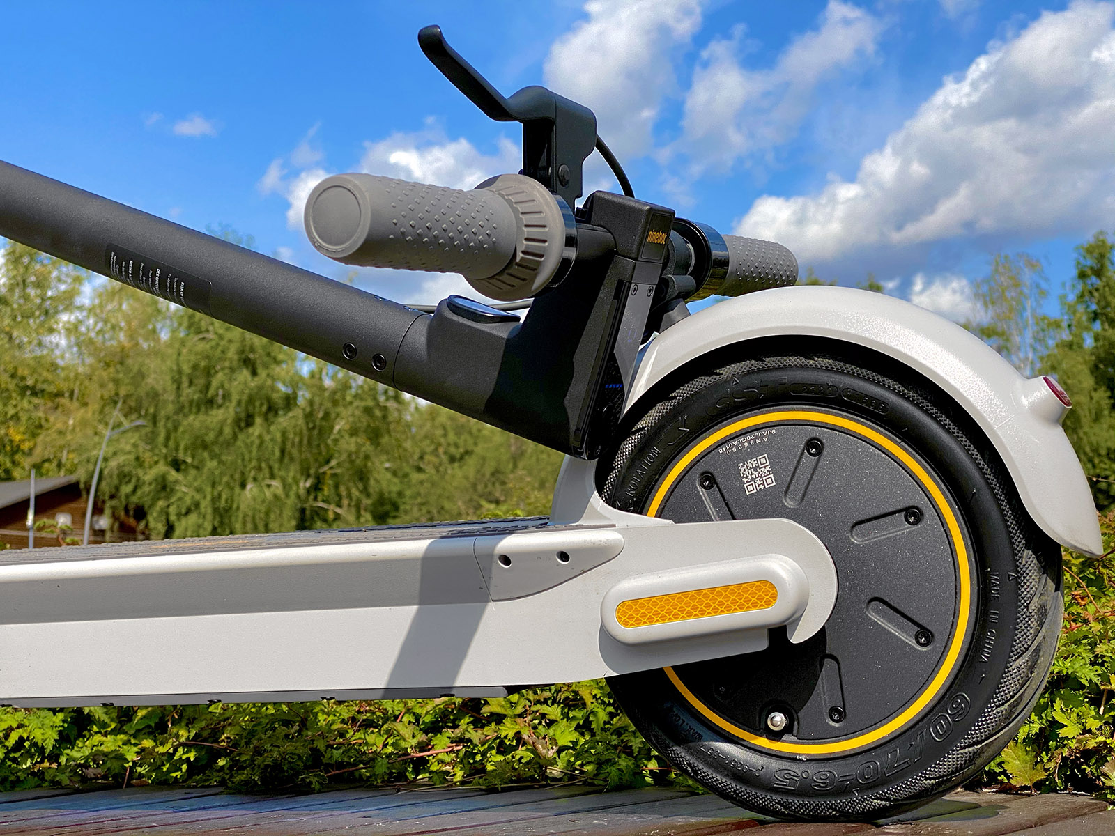 Переднее колесо оснащено антиблокировочной системой E-ABS, а заднее — большим дисковым тормозом. Во время нажатия на ручку тормоза системы активируются одна за другой, сокращая тормозной путь и обеспечивая безопасную остановку
