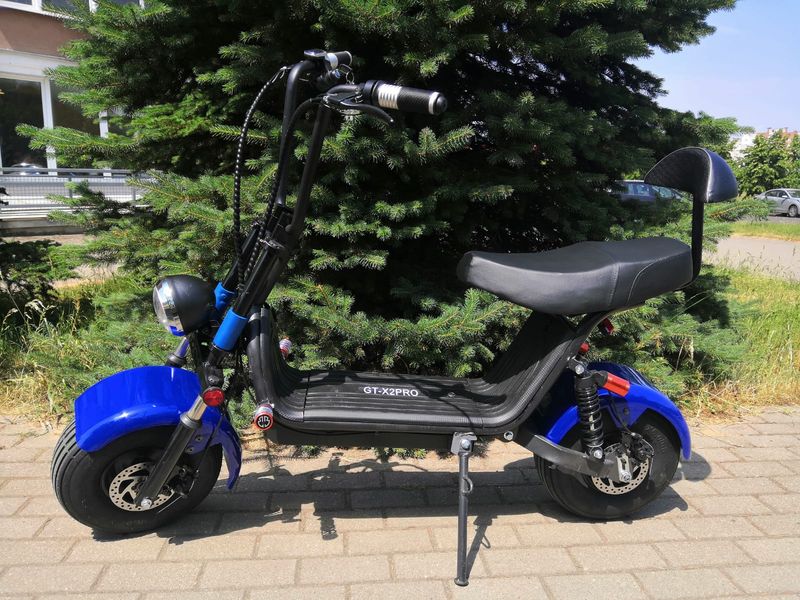 Электроскутер CityCoco GT X2 Pro - первое что бросается в глаза на обновленной модели — это её дорожный просвет, не смотря на небольшие габариты. Увеличен диаметр колес до 14". Данная модель оборудована яркой светодиодной фарой спереди и ярким стоп-сигналом сзади, оригинального дизайна. Мощный мотор 1000Вт в сочетании с аккумуляторной батареей на 13Ач 48Вт, 4 пружинных амортизатора, 2 на вилке, 2 под сиденьем, дисковые тормоза – ездить на CityCoCo GT X2 Pro комфортно и безопасно!