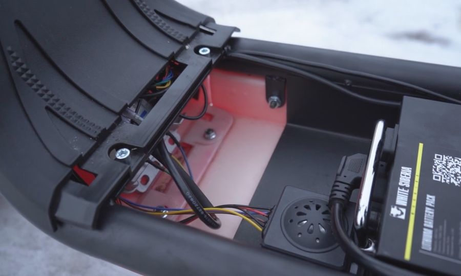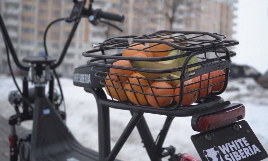 На данный момент модель WHITE SIBERIA MINI R 1200w единственная укомплектована одновременно и корзиной, и дополнительным сиденьем с мягкой спинкой. Корзина выполнена из прочного пластика и имеет грузоподъемность 30 кг.