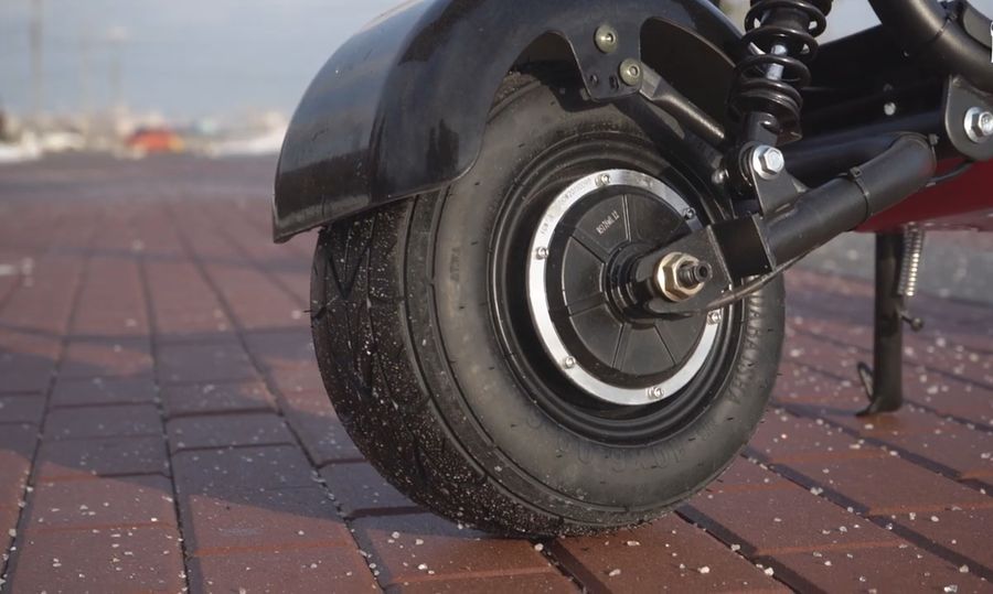 Колеса диаметром 6,5 дюймов с высоким профилем отлично справляются с неровностями на городских и загородных дорогах. А полноразмерные крылья позволяют защитить водителя и пассажира от грязи и брызг во время движения.