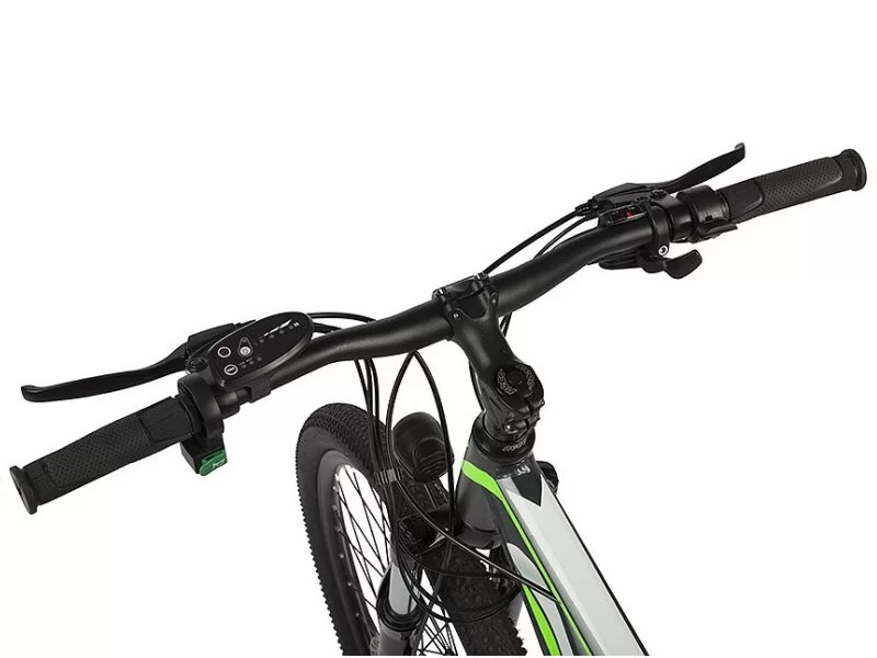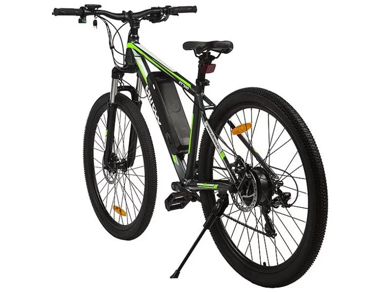 Алюминиевая рама, амортизационная вилка, двойные алюминиевые обода, дисковые механические тормоза, подножка, система освещения, батарея Li-on (36V 9Ah). Максимальная нагрузка: до 110 кг. Максимальная скорость: до 45 км/ч. Пробег на одной зарядке: 50 км. Подходит для активной езды по различным дорогам и пересеченной местности. Диаметр колес: 27,5 дюймов. Вес - 22 кг.