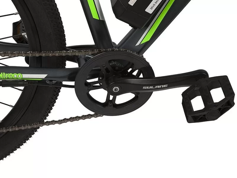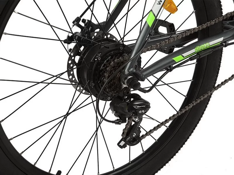 Спортивный девайс с навесным оборудованием Shimano, оснащенный электродвигателем мощностью 350W, 7 скоростей. Байк имеет режим поддержания скорости без кручения педалей, а также имеет несколько режимов помощи при педалировании.