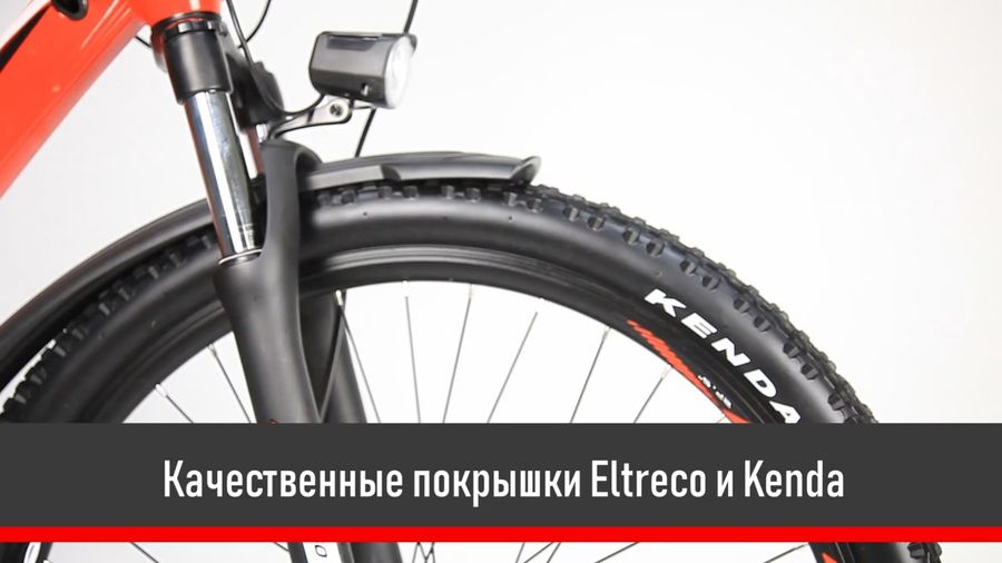 - Колеса диаметром 27,5 дюймов покрыты широкими внедорожными шинами Kenda с грубым протектором.