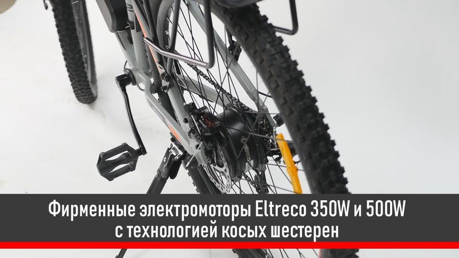 - Электровелосипед снабжен прочными крыльями из пластмассы, а также багажником из металла, расположенным позади, предназначенным для перевозки грузов до 15 кг.