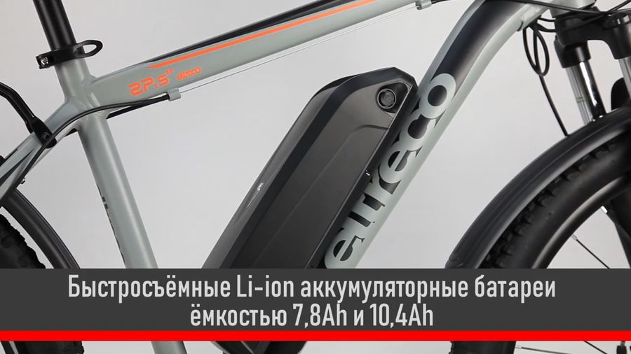 - Съемный аккумулятор в 36 Вольт и емкостью 10 Ач дает возможность осуществлять поездки на далекие дистанции без необходимости подзарядки.
