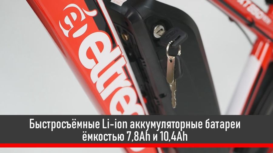 Литий-ионная батарея расположена прямо под рамой велосипеда. Корпус АКБ не люфтит, что тоже важно. Емкость аккумулятора – 10,4 Ah, напряжение – 36 В. Согласно уверениям производителя, на одном заряде райдер может проехать до 70 км пути. Это результат передвижения в режиме Assistant, то есть, помогая педалями. Только в электрическом режиме можно рассчитывать на прохождение 30-35 км.