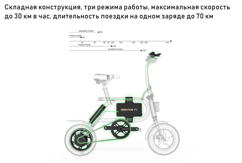 Мини электровелосипед Inmotion P2 работает в трех режимах: