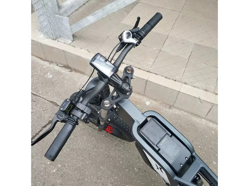 - На руле расположен дисплей, с его помощью вы сможете отследить скорость, пройденное расстояние и остаток заряда батареи.