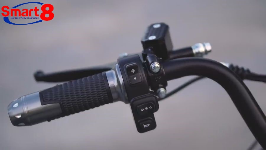 - Езда на электровелосипеде не требует особых навыков. Система управления проста и понятна. На руле находится дисплей, который мониторит все основные показатели движения, включая уровень заряда аккумулятора. Выбирать нужную скорость и включать/выключать световые приборы следует при помощи кнопок. Положение ручек тормоза легко настраивается. Все элементы системы управления транспортным средством сделаны из тактильно приятных материалов.