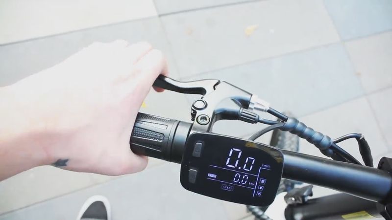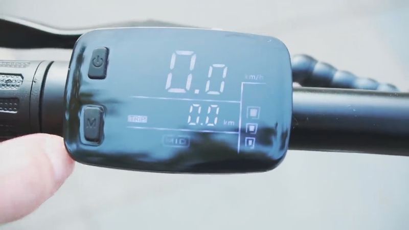 На руле с правой стороны находится компактный монитор с двумя обычными кнопками. На нем отображаются такие параметры, как остаток заряда аккумулятора, пройденное расстояние и текущая скорость. Иконки и числа достаточно крупные, поэтому отлично просматриваются на фоне темного цвета.