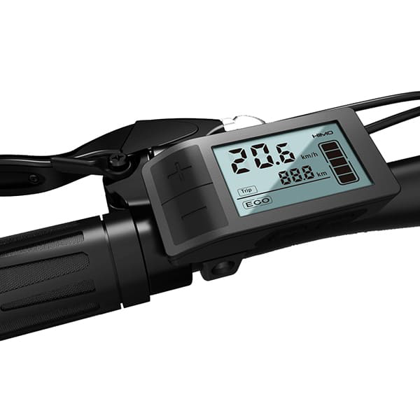 Слева на руле расположен небольшой дисплей, на котором показываются данные о скорости, расстоянии, режиме езды и уровне заряда батареи. Он надежно защищен от воды и пыли и имеет рейтинг IPX7. А расположенные рядом с ним кнопки позволяют включать/выключать освещение и менять режим езды.