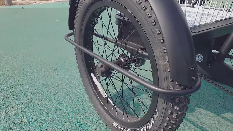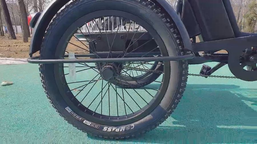 - Колеса сделаны на основе сдвоенных ободов с упрочненными стальными спицами. Это делает велотрицикл подходящим для использования на даче, где часто нужно возить грузы, при этом благодаря возможностям устройства можно наслаждаться приятной велопрогулкой