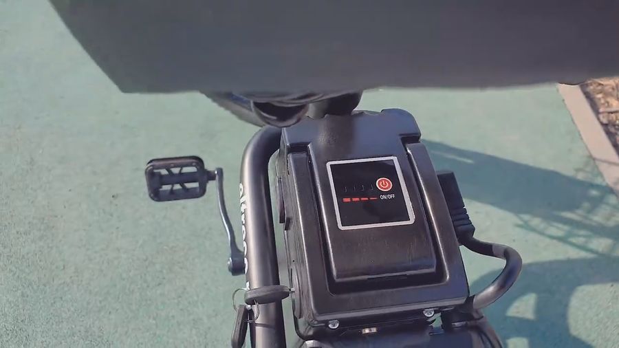 - Электромотор мощностью пятьсот Вт гарантирует возможность работать при высокой нагрузке, а аккумуляторная батарея обеспечивает проходимую дистанцию до 40 км на полном заряде