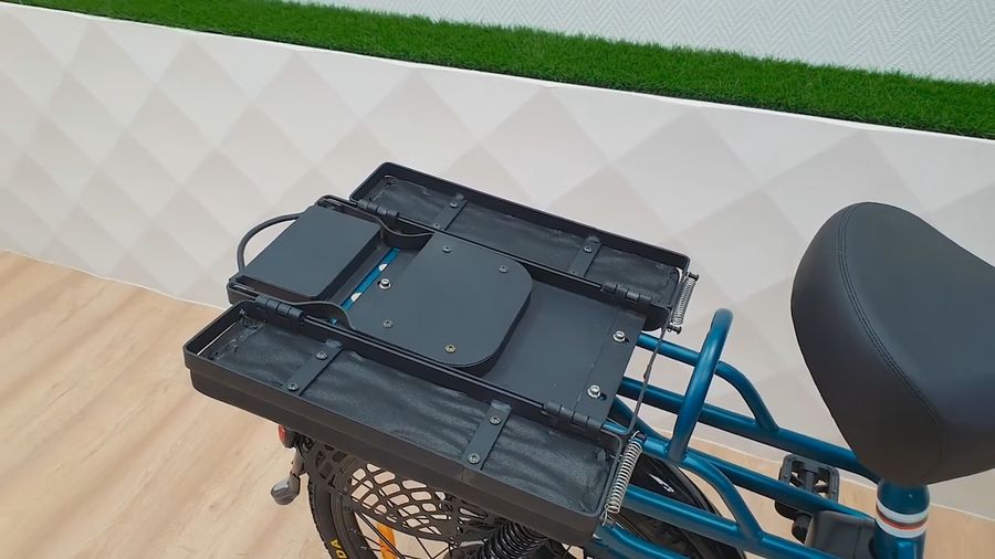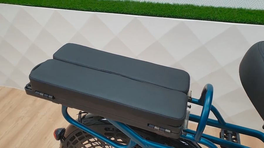 - Велогибрид оборудован полноценным пассажирским сиденьем. Это существенный плюс, если вы хотите путешествовать или добираться до работы с другом, родственником или второй половинкой. "Седушка" мягкая и удобная. Она раскладывается при необходимости перевозки габаритных грузов (за счет этого происходит увеличение площади).