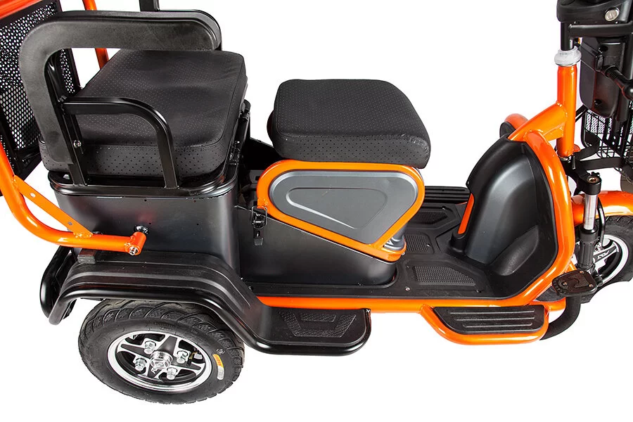 Модель можно назвать универсальной: она придется по вкусу и молодым водителям с детьми, и подросткам, и людям пожилого возраста; электротрицикл может быть использован как для романтических прогулок и поездок на пикник, так и для транспортировки грузов, актуальна модель для владельцев загородных участков, фермеров и индивидуальных предпринимателей.